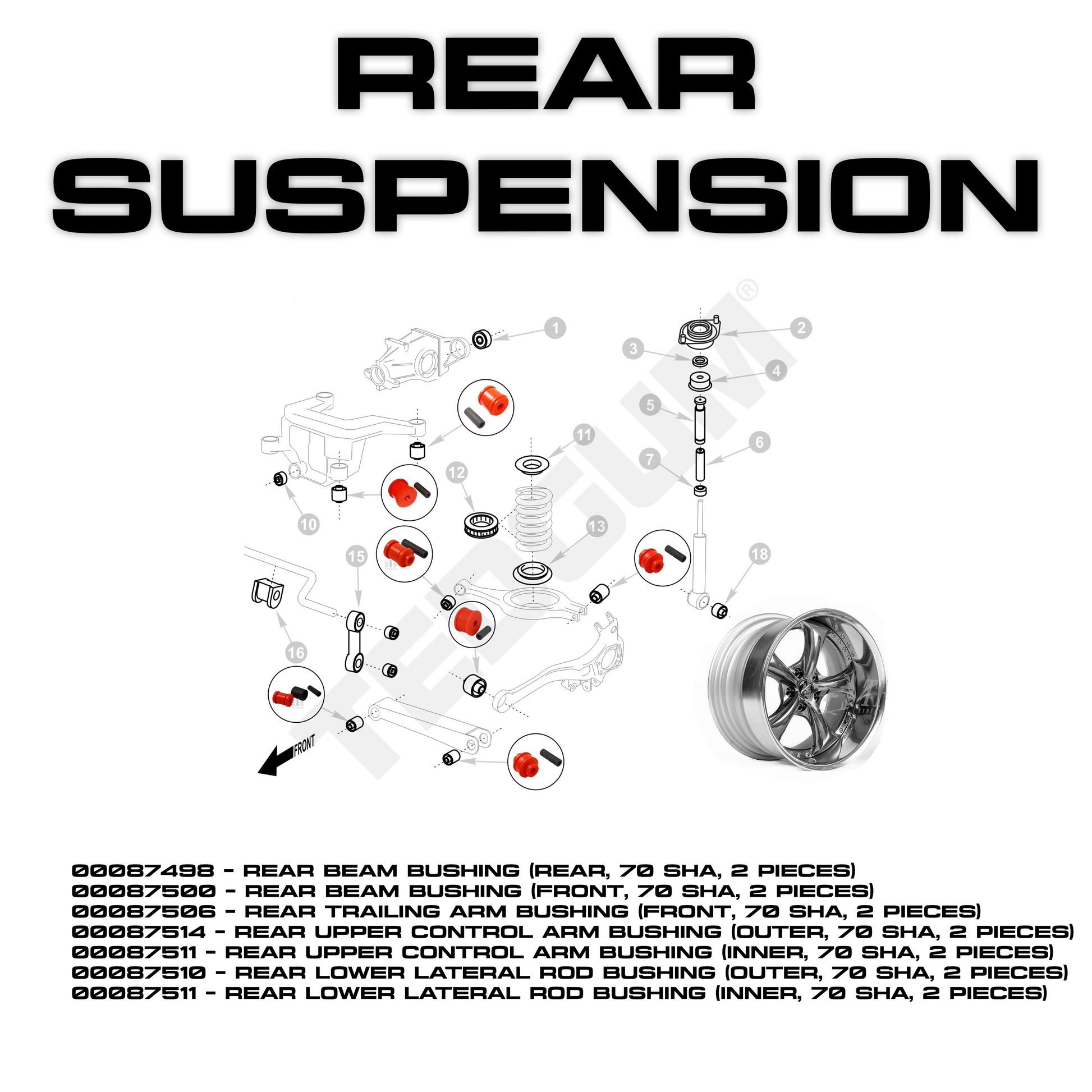 What's Included: Complete set of polyurethane control arm bushings (check photos) designed for a perfect fit on BMW E36. Replaces weak rubber bushings for superior stability and steering response.